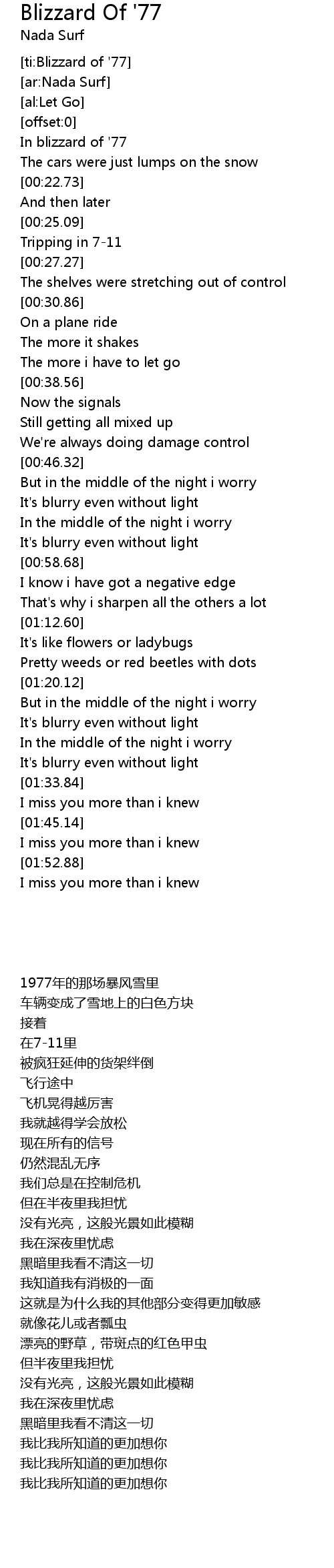 | [01:17.45] | Pretty weeds or red beetles with dots |