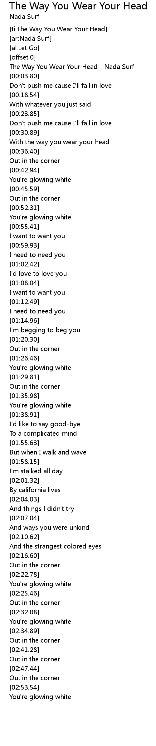 | [00:01.40] | The Way You Wear Your Head - Nada Surf |