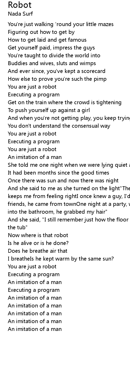 And she said to me as she turned on the light"There's something you don't know keeps me from feeling rightI once knew a guy, I'd seen him aroundHe knew all my friends, he came from townOne night at a party, we both were thereHe followed me into the bathroom, he grabbed my hair" |