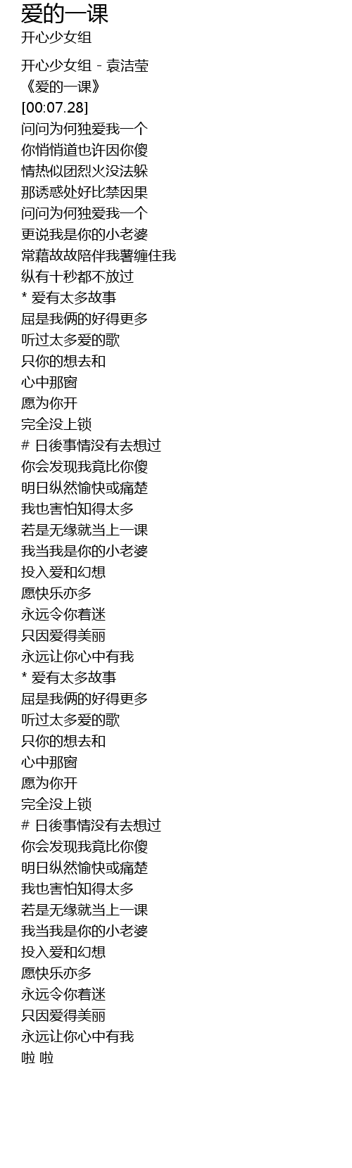 | [00:03.36] | 开心少女组 - 袁洁莹 |