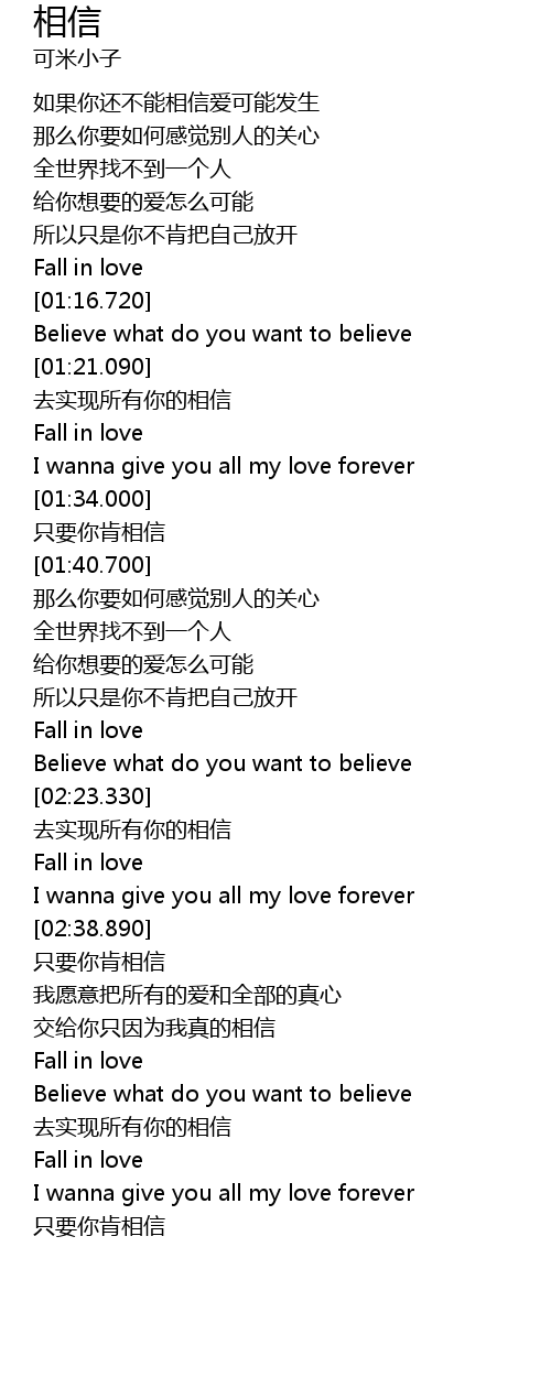 | [02:41.480] | zhi yao ni ken xiang xin |