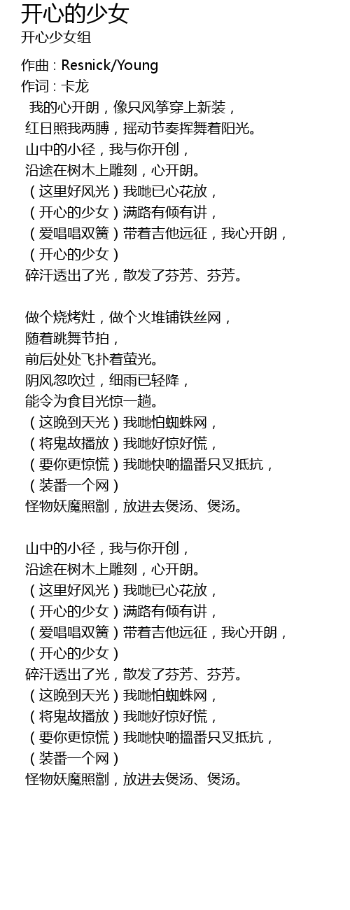 | kāi xīn de shào nǚ mǎn lù yǒu qīng yǒu jiǎng, | |