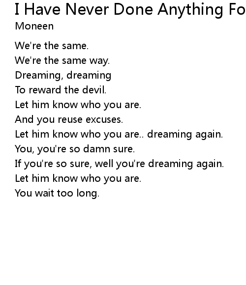 | Song | I Have Never Done Anything For Anyone That Was Not For Me As Well |