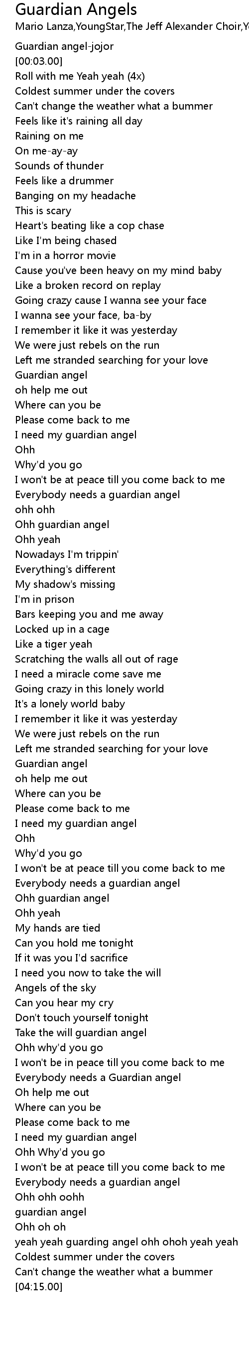 [03:16.46] Everybody needs a Guardian angel