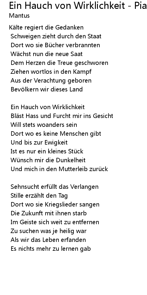 | Song | Ein Hauch von Wirklichkeit - Piano Version |
