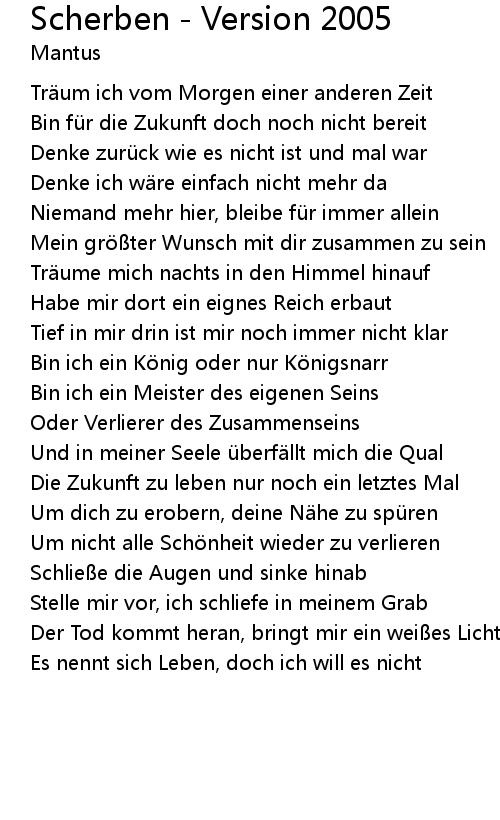 | Niemand mehr hier, bleibe fü r immer allein | |