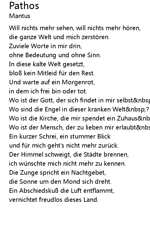 | Will nichts mehr sehen, will nichts mehr h ren, | |