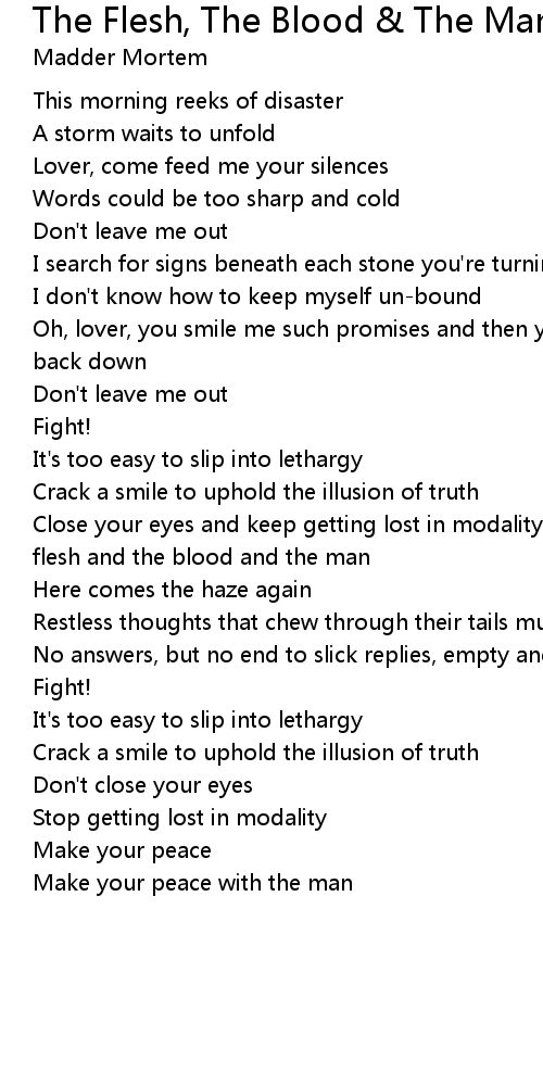 Close your eyes and keep getting lost in modality or make your peace with the flesh and the blood and the man |