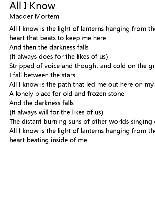 All I know is the light of lanterns hanging from the trees and the sound of the heart that beats to keep me here |
