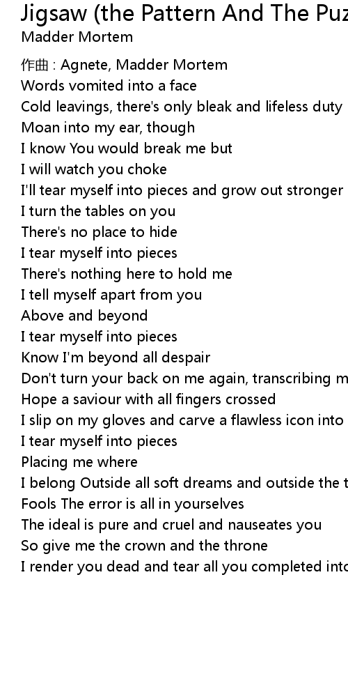 | I tear myself into pieces | |