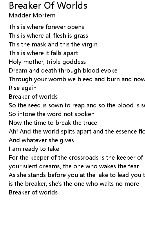 As she stands before you at the lake to lead you to the shore, she's the one who is the breaker, she's the one who waits no more |