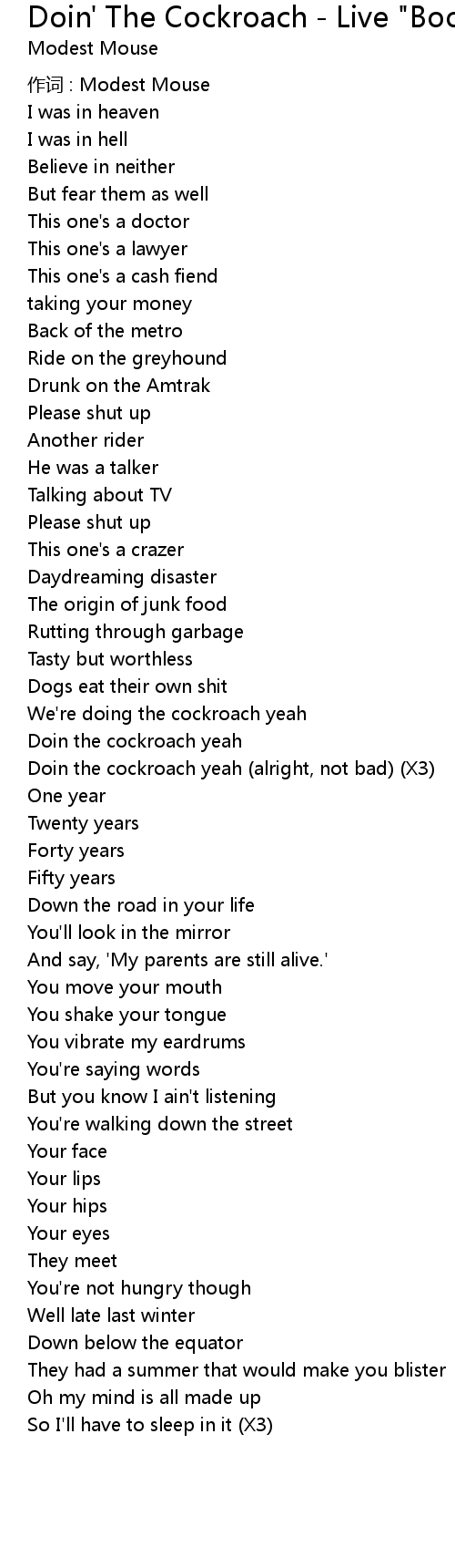 | Doin the cockroach yeah (alright, not bad) (X3) | |