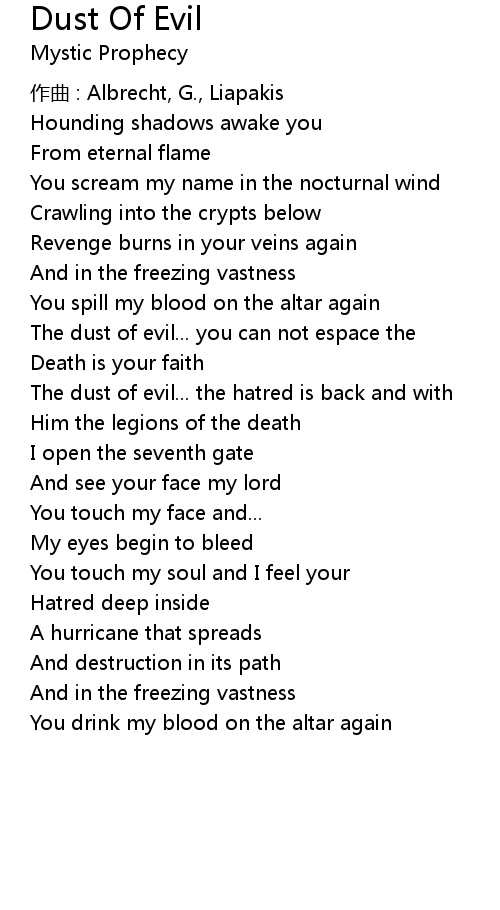 | Song | Dust Of Evil |