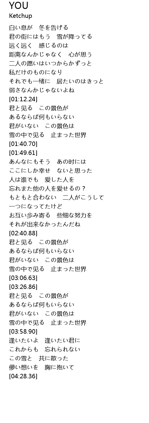 | [01:33.52] | 雪の中で见る 止まった世界 |