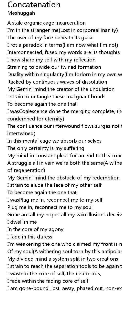 A struggle all in vain we're both the same(A withering soul torn by the attempts of regeneration) |