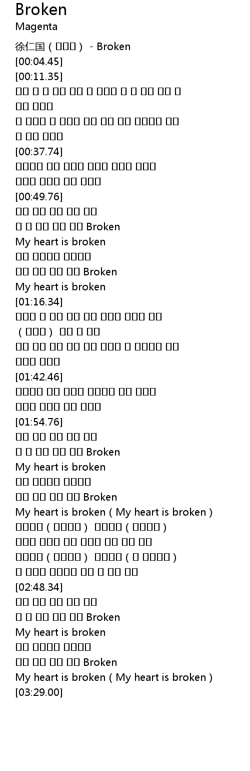 | [02:18.54] | My heart is broken(My heart is broken) |