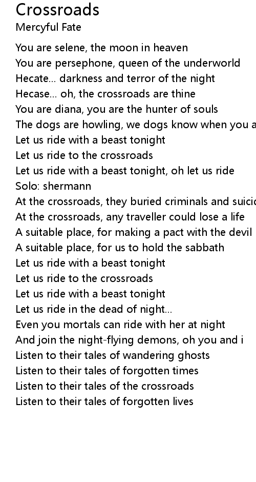 Let us ride to the crossroads |