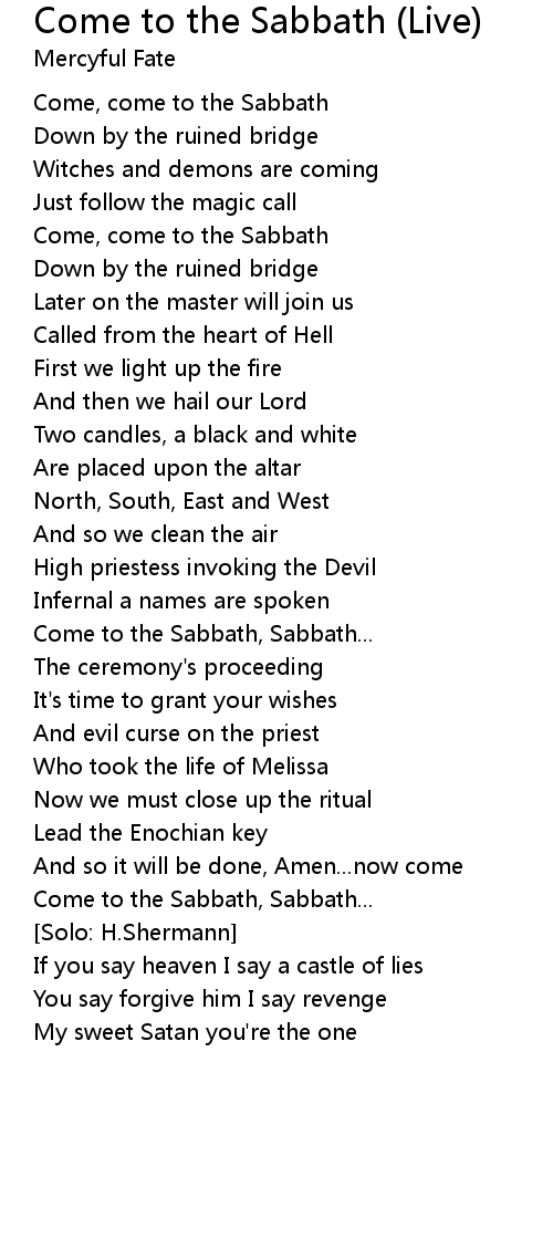 Come to the Sabbath, Sabbath... |