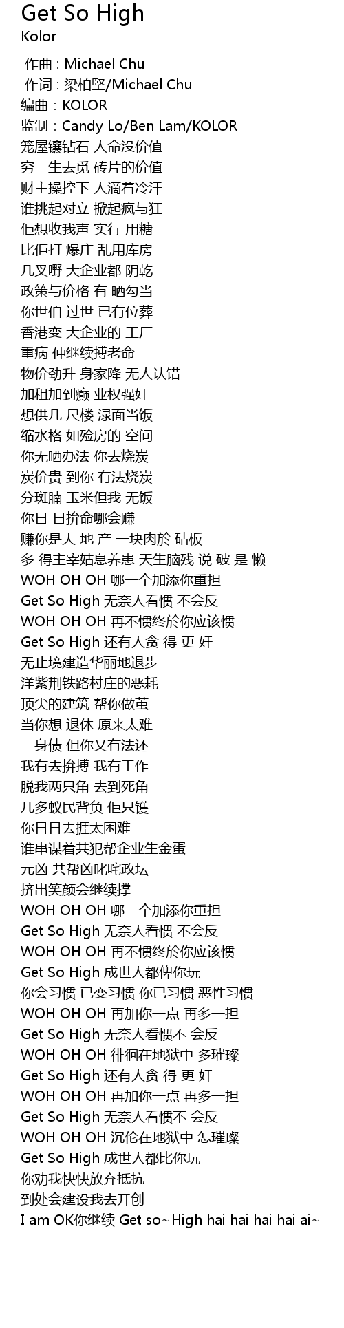 | [02:53.99] | Get So High 成世人都俾你玩 |