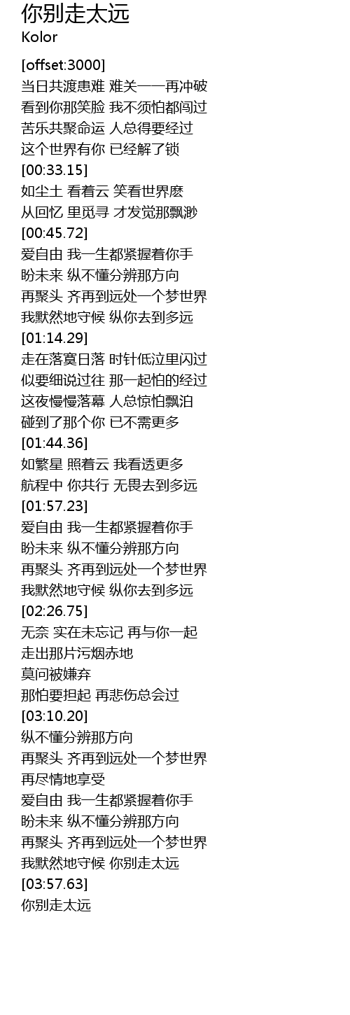 | [03:49.47] | 我默然地守候 你别走太远 |