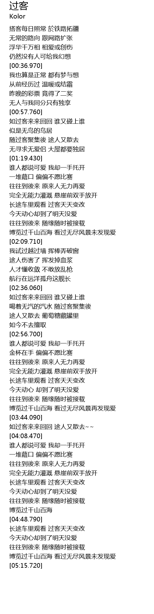 | [04:00.910] | 如过客来来回回 途人又散去~~ |