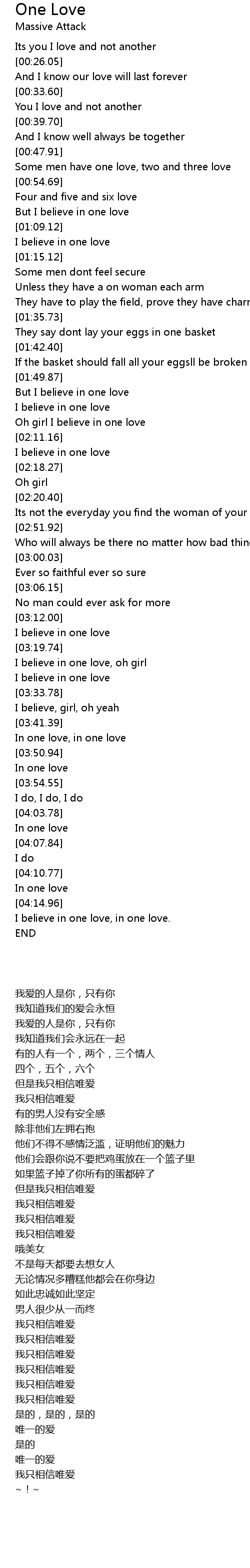 Oh girl I believe in one love |