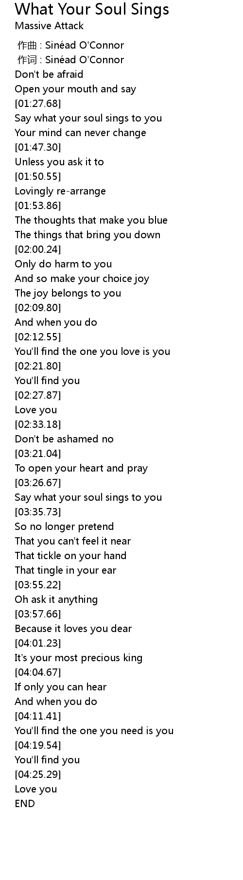| [00:01.00] | 作词 : Sinéad O'Connor |