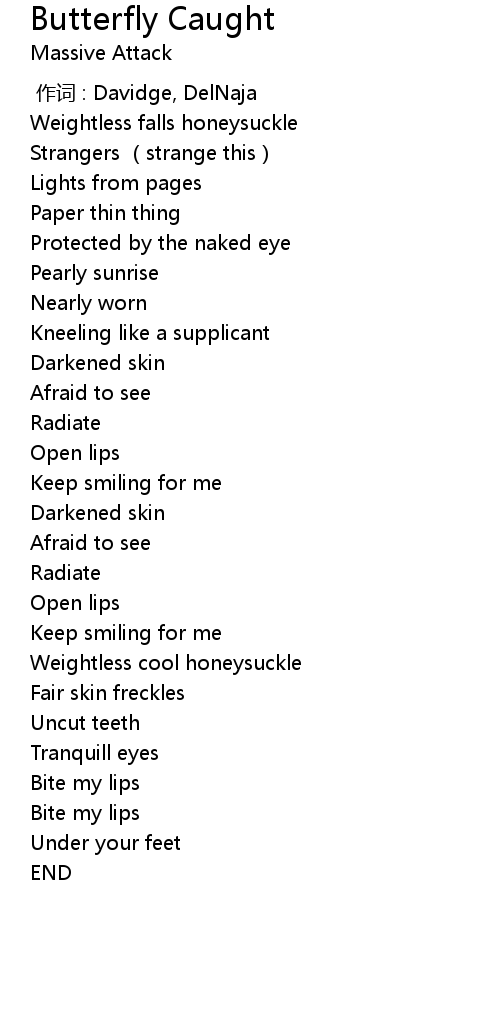 | Song | Butterfly Caught |