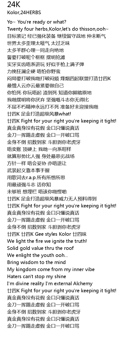 | [00:09.890] | Twenty four herbs, Kolor, let' s do thisson, ooh |