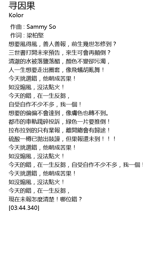 | [03:09.520] | 今天挑選錯,他朝成苦果! |