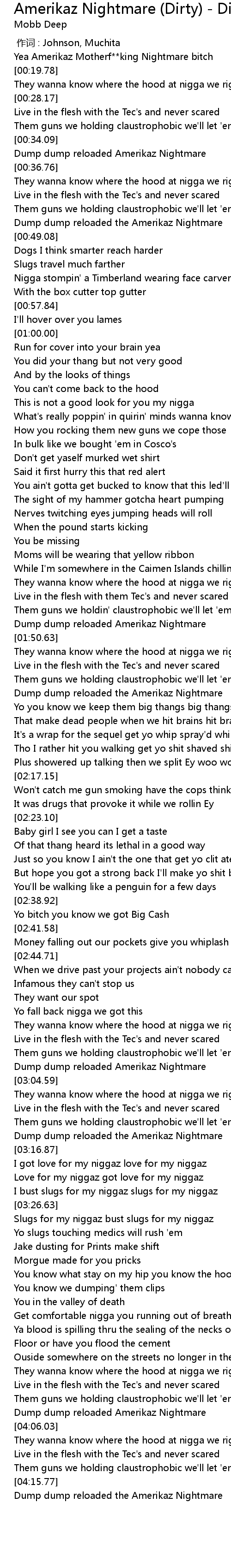 | [03:14.77] | Dump dump reloaded the Amerikaz Nightmare |