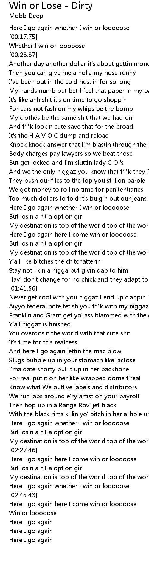 Here I go again whether I win or looooose |