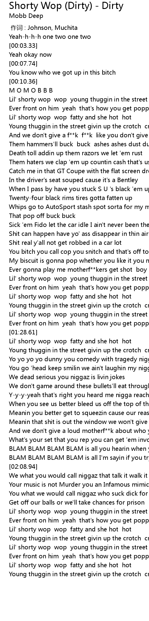 | [02:32.38] | Lil' shorty wop wop young thuggin in the street |