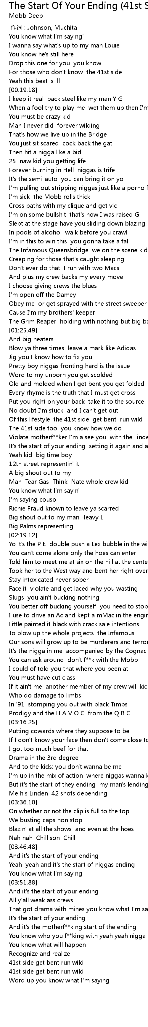 | [03:49.45] | Yeah yeah and it' s the start of niggas ending |