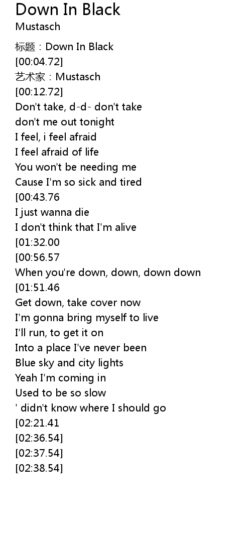 | [01:01.51][01:51.46][02:31.54] | When you're down, down in black |