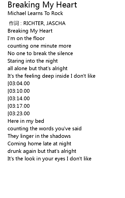 | [03:35.00][03:10.00][02:19.00][01:10.00] | for breaking my heart |