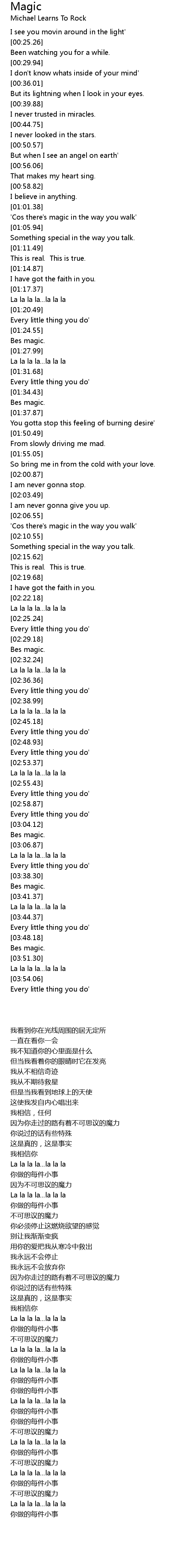 'Cos there's magic in the way you walk' |