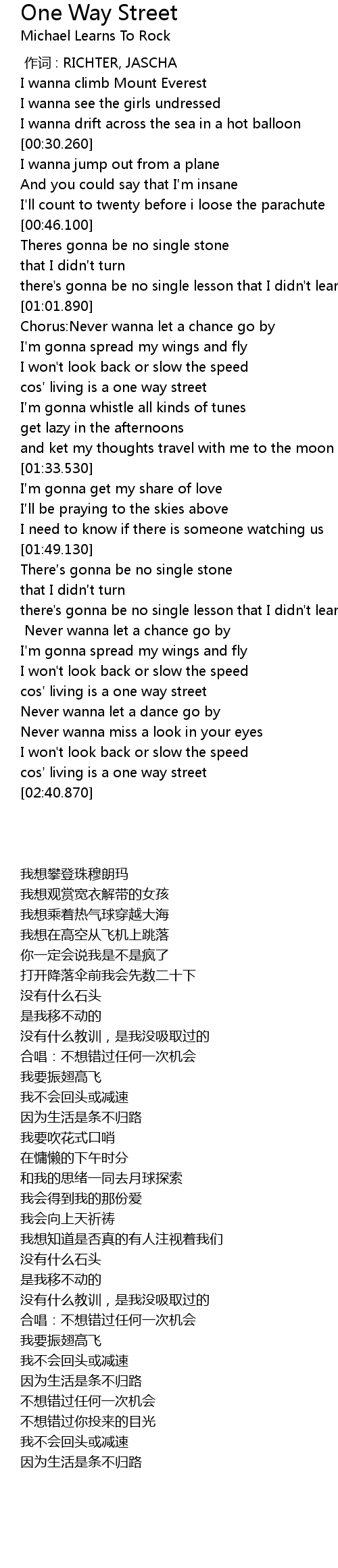 | [02:20.680] | cos' living is a one way street |
