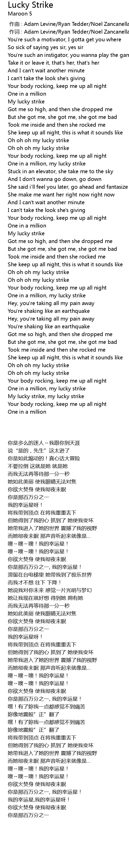 | [00:01.00] | 作词 : Adam Levine/Ryan Tedder/Noel Zancanella |