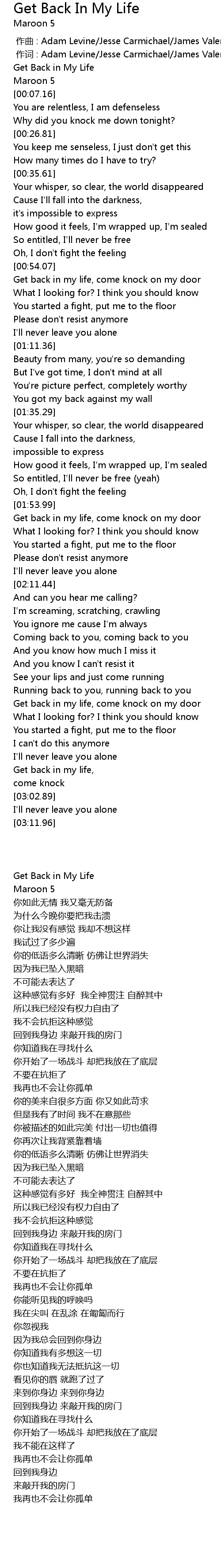 | [00:00.345] | 作词 : Adam Levine/Jesse Carmichael/James Valentine |