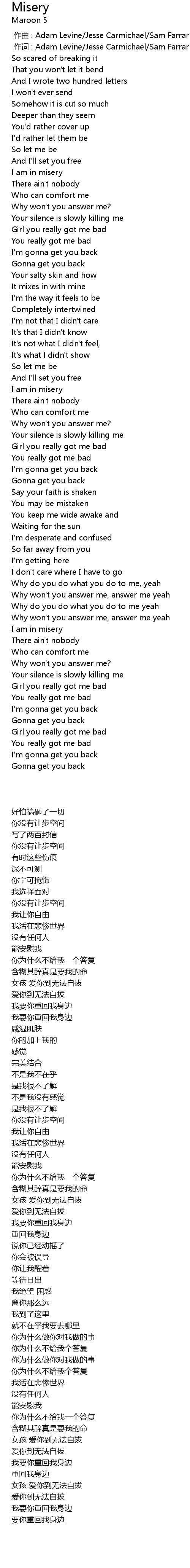 | [00:01.00] | 作词 : Adam Levine/Jesse Carmichael/Sam Farrar |