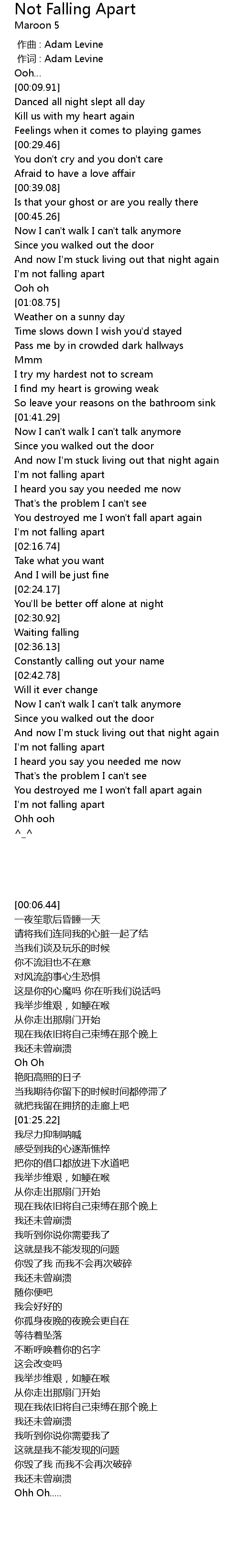 | [00:00.00] | 作曲 : Adam Levine |
