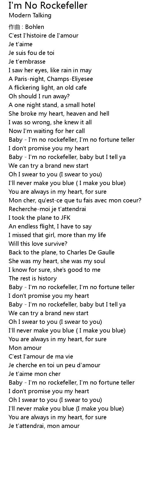 | Baby I' m no rockefeller, baby but I tell ya | |