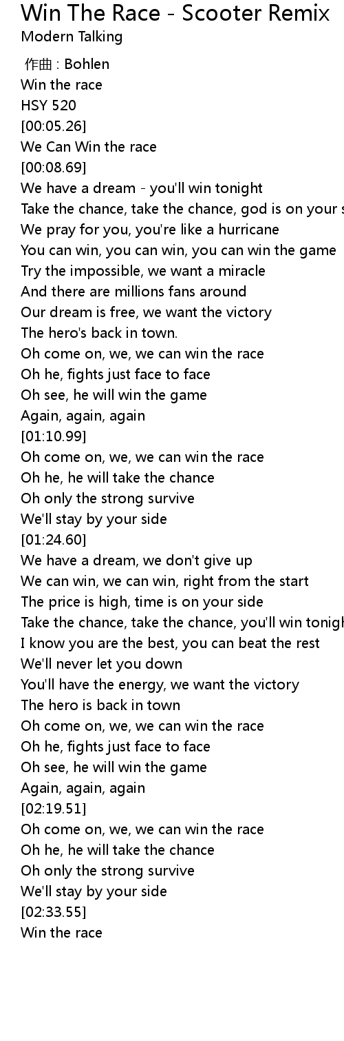 | [01:51.68] | I know you are the best, you can beat the rest |