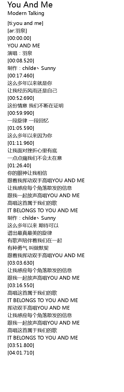 | [01:45.910] | 跟我一起放声高唱YOU AND ME |