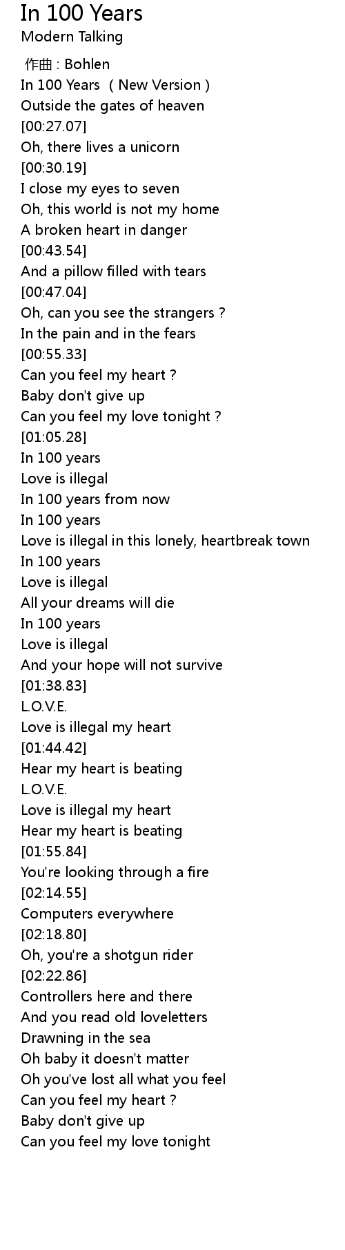 | [00:01.47] | In 100 Years New Version |