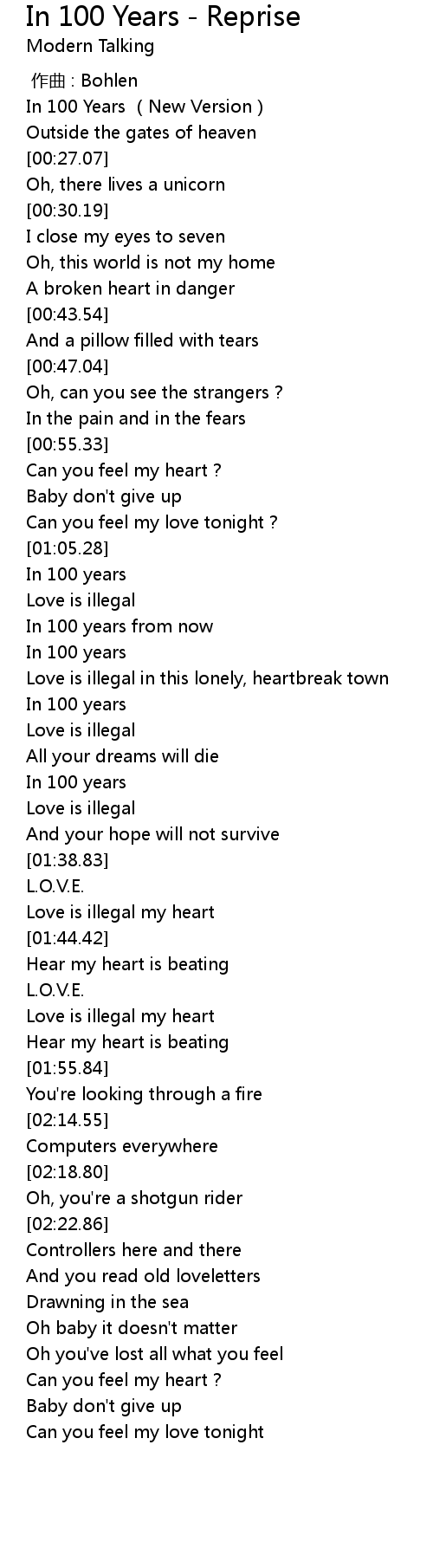 | [00:01.47] | In 100 Years New Version |