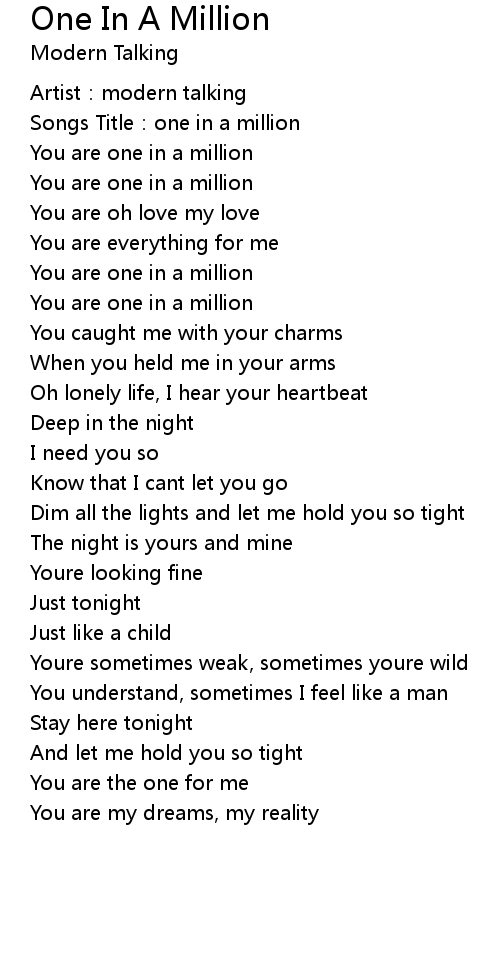 | [00:45.90] | You are one in a million |