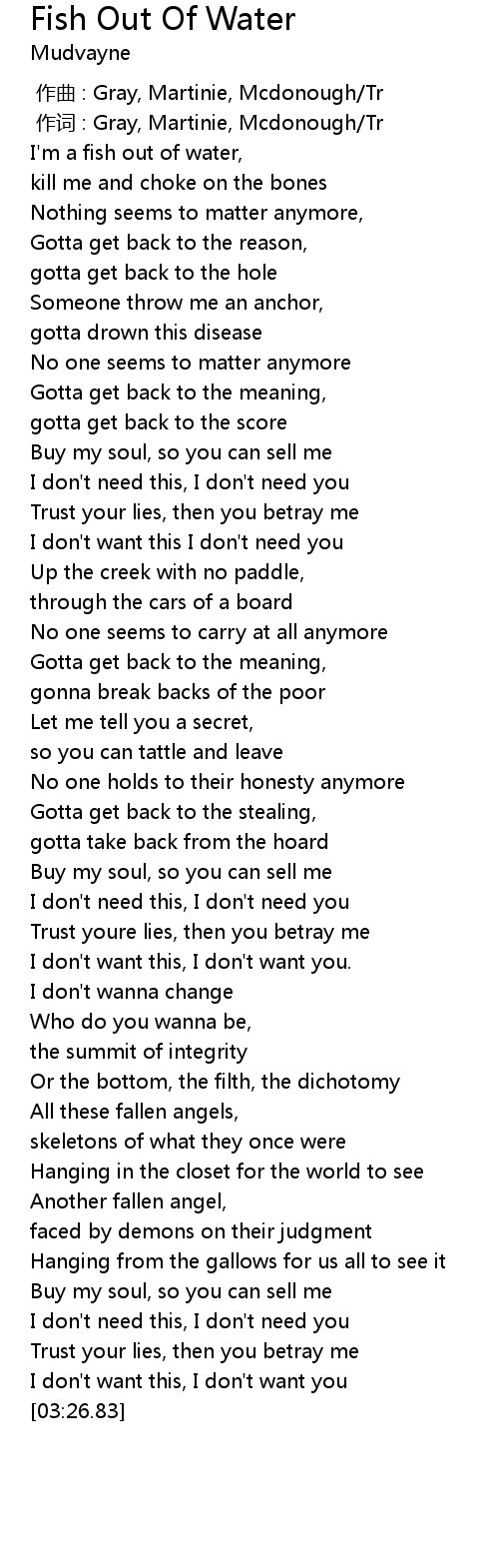 | [00:45.44] | I'm a fish out of water, |