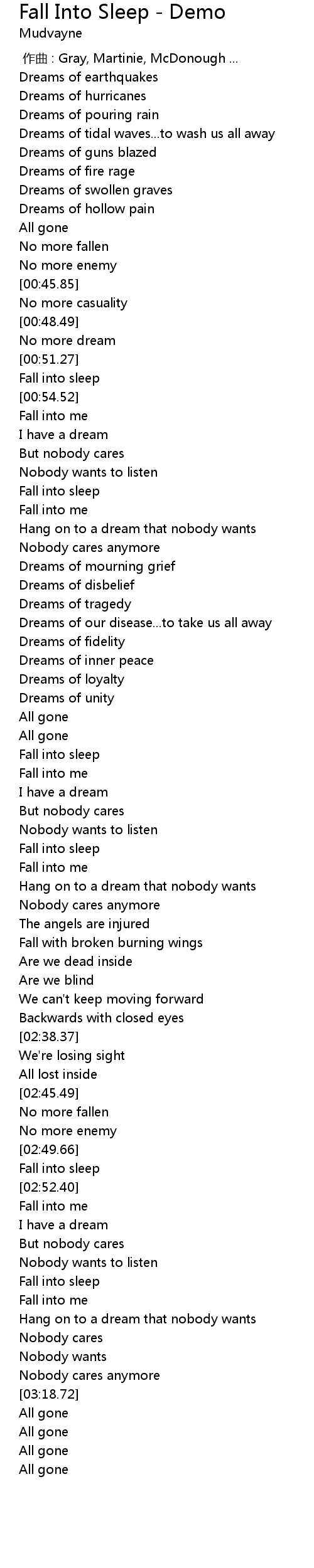 | [00:52.85] | Fall into sleep |